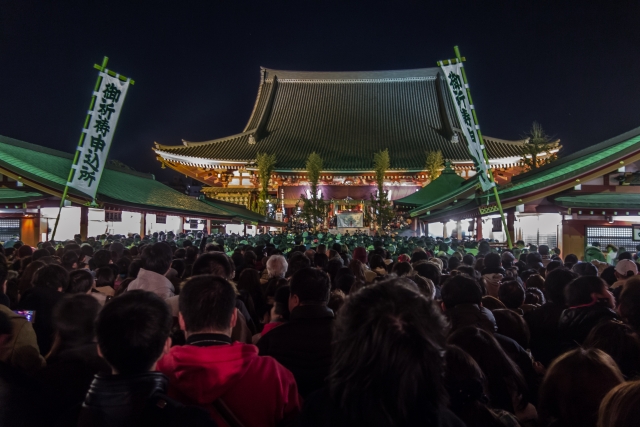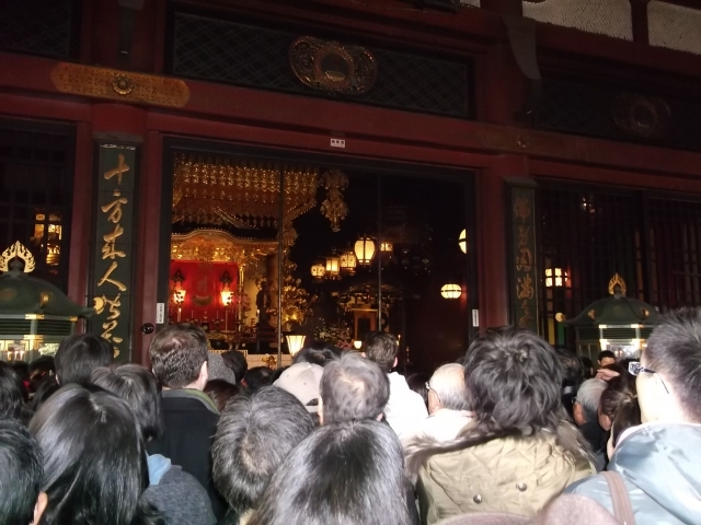 Right after Joya-no-Kane rings, people line up in front of temples and shrines, waiting to pass under the sacred gate to pray for happiness in the new year. They make small monetary offerings called Osaisen (お賽銭).