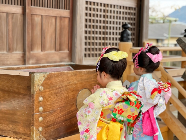 It is very common to let children wear traditional kimono. Rental shops are easy to find, so even families without kimono can join. If you visit Japan in November and see children in kimono at a temple or shrine, most likely they are celebrating Shichi-Go-San.